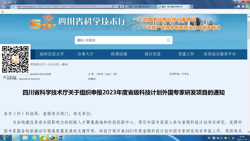 四川省科學技術廳關于組織申報2023年度省級科技計劃外國專家研發(fā)項目的通知