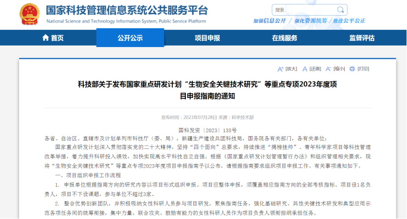 2.“生物安全關鍵技術研究”重點專項2023年度項目申報指南