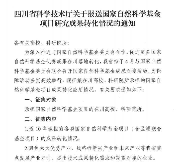 1.國家自然科學基金項目成果轉化及需求表