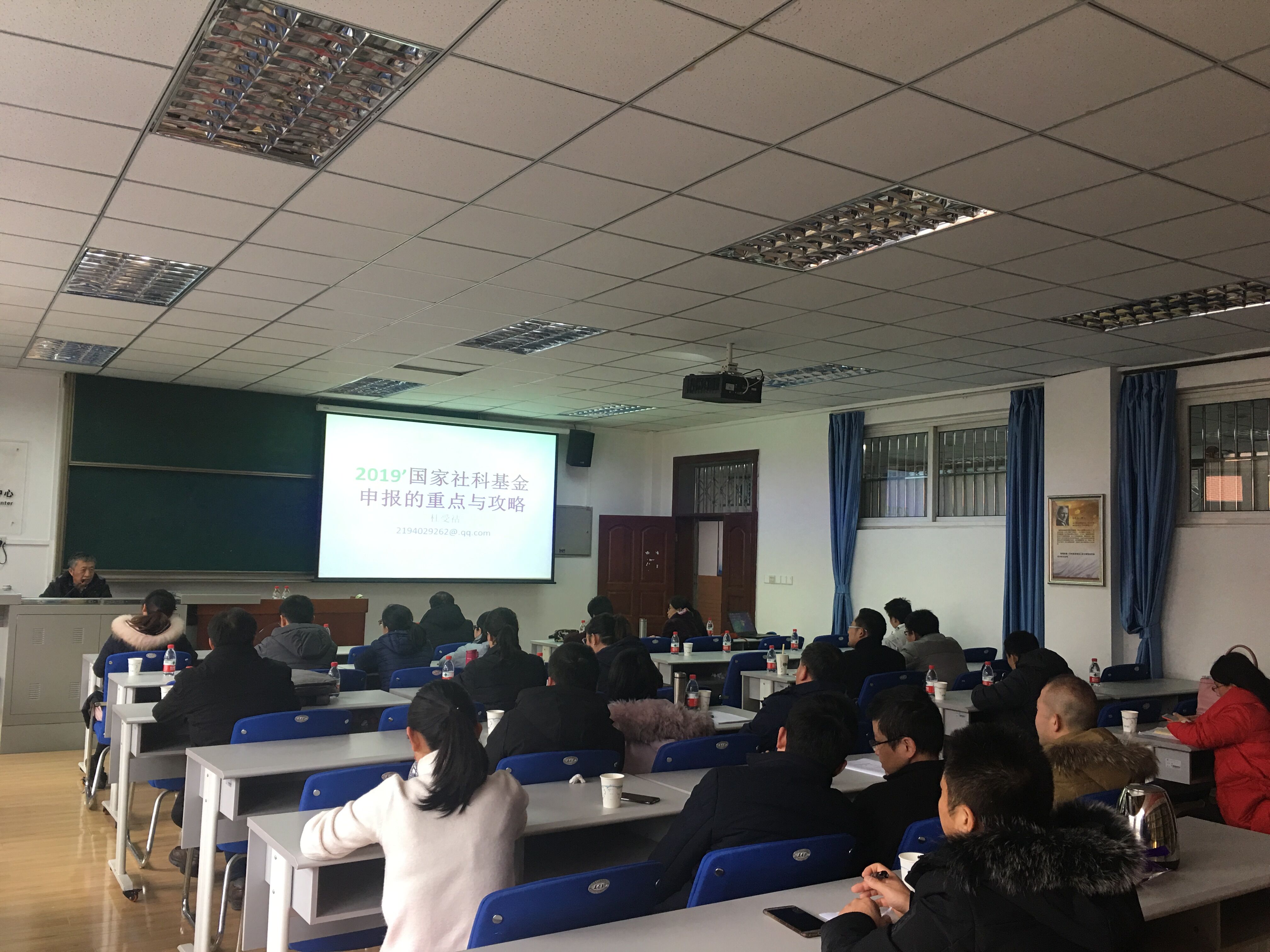 為了推動我校2019年度國家社科基金申報工作,為廣大教師提供有針對性的指導與服務。1月15日,學校舉辦2019年國家社科基金申報輔導交流會,邀請原四川省社會科學院副院長、國評專家杜受祜教授作“2019年國家社科基金申報戰略及重點”專題輔導報告及進行“一對一”申報書撰寫指導,相關學院及部門30多位教師參加。會議由科研處副處長陳怡男主持。