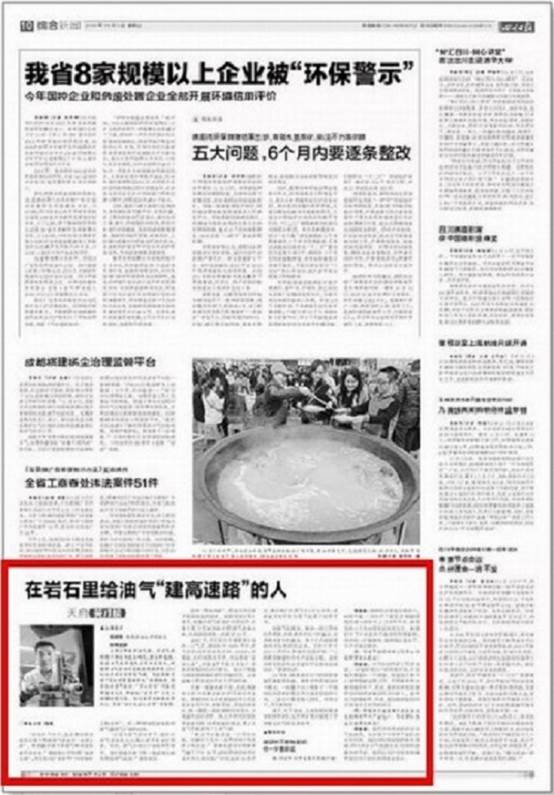 2016年11月9日,《四川日報》發表通訊《在巖石里給油氣“建高速路”的人》,《華西都市報》發表通訊《石油達人郭建春 “磨刀石”里擠出油和氣》,報道了“四川杰出人才獎”獲得者、實驗室副主任郭建春教授從事致密油氣藏、頁巖氣藏增產理論與技術研究和人才培養的故事以及他做出的主要貢獻。