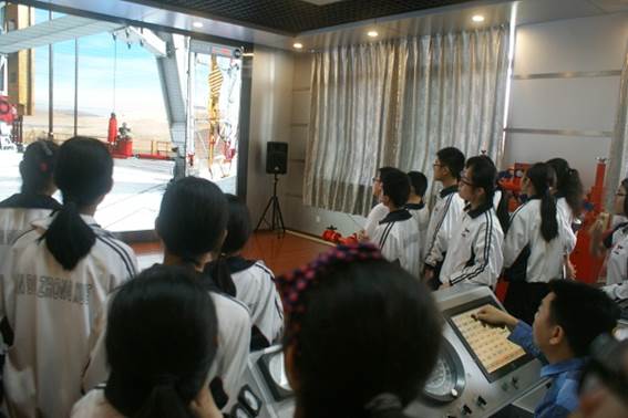 學生觀看石油鉆井模擬過程