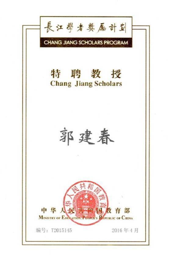 副主任郭建春教授入選教育部2015年度“長江學者獎勵計劃”特聘教授 發布日期:2016年05月04日 供稿: 編輯:hgyzyw 審核: 點擊:[]