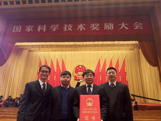 王國榮、毛良杰、劉清友、石曉兵(左起)在國家科學(xué)技術(shù)獎(jiǎng)勵(lì)大會(huì)上