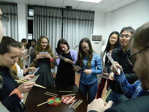 12月3日晚,俄羅斯國立古勃金石油天然氣大學代表團12名學生與我校SPE學生分會成員30余人在國家重點實驗室A403學術報告廳舉行了SPE文化之夜聯歡活動。活動內容主要包括英文與俄語歌曲連唱、武術表演、中國書法、使用筷子等表演節目。其中,我校SPE分會成員表演的二胡《賽馬》、琵琶獨奏、吉他彈奏《Hey Jude》、中國功夫等節目受到了俄羅斯學生的青睞。