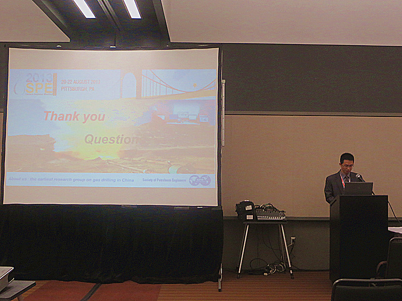 來自美國、加拿大、墨西哥、印度等國的知名石油公司與石油相關院校的400余名技術專家參加了會議,我室李皋副研究員攜研究生羅兵代表實驗室“欠平衡與儲層保護基礎理論與關鍵技術”團隊參會,并在鉆井與完井分會做了題為“Study on The Mechanisms and Evaluation Methods of Borehole Instabilities in Gas Drilling”的學術報告,介紹了我室在氣體鉆井井壁穩定、氣體鉆井在致密儲層勘探相關領域取得的重要進展,并現場與多位專家就氣體鉆井井壁穩定及其在頁巖氣鉆井領域的應用前景問題進行了深入交流,研究成果獲得了會議主席Ben Thomas和與會專家的高度評價。