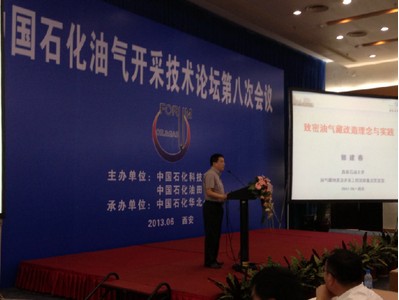 2013年6月14-15日,中國石油化工股份有限公司第八次油氣開采技術論壇在西安召開,會議由中國石油化工股份有限公司科技開發部和油田勘探開發事業部主辦,中國石油化工股份有限公司華北分公司承辦,會議主題為致密油氣儲藏開采技術。我室學術帶頭人郭建春教授應邀出席并做《致密油氣藏改造理念與實踐》的大會專題報告。