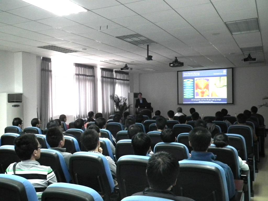 2012年10月9日,英國利茲大學過程環境和材料工程學院王密教授應邀來我室訪問和學術交流。在國家重點實驗室A403為我室師生做了題為《Multi-scale Measurement and Imaging for Process Application》的學術報告,部分師生對王教授介紹的層析成像等新技術很感興趣,并就自己的科研課題和研究領域與王教授開展了積極討論。