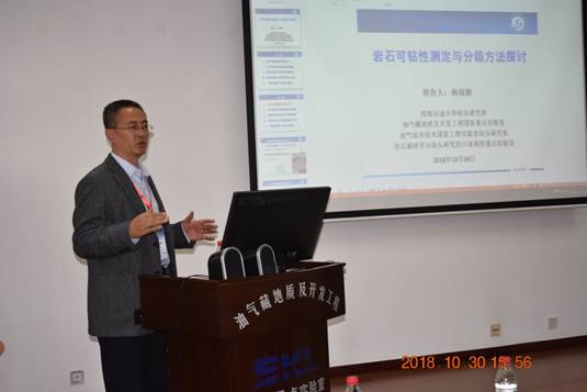 10月30至31日,大會報告西南石油大學分會場在國家重點實驗室A403舉行,大會由張烈輝、郭建春、郭肖和李曉平主持。10月30日來自西安石油大學的張紹槐教授、國家重點實驗室孟英峰、郭小陽(李明)、王興志、楊迎新、李閩、康毅力、蔣琪教授以及香港中文大學黃庭芳教授、法國斯特拉斯堡大學Patrick Baud教授分別作了大會報告。