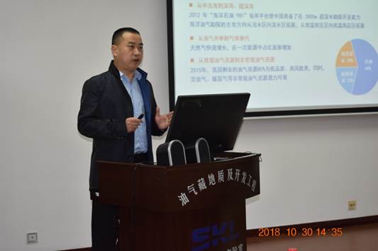 10月31日,來自中國石油勘探開發研究院廊坊分院副總工程師胥云教授做了大會報告專題講座、道達爾集團亞洲研發副總裁徐忠華博士、中國石油天然氣集團公司科技管理部規劃計劃處處長撒利明和中國石油新疆油田分公司工程院副院長潘竟軍分別作了大會報告。(國家重點實驗室供稿)