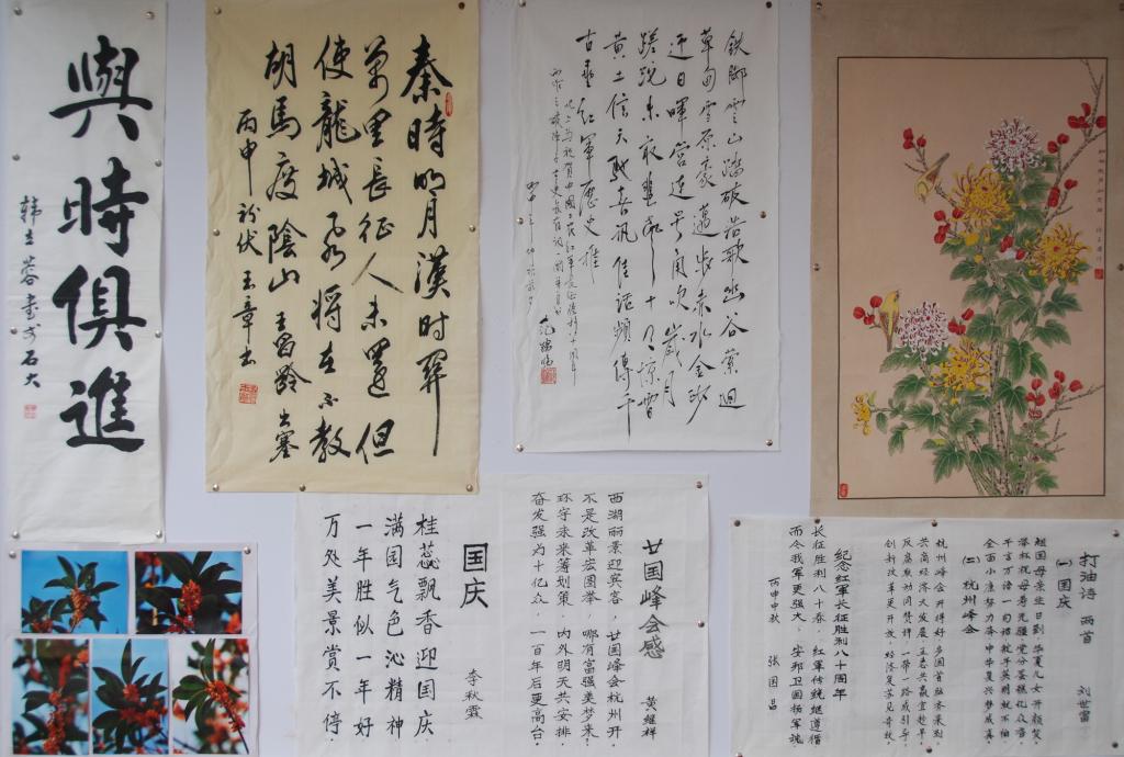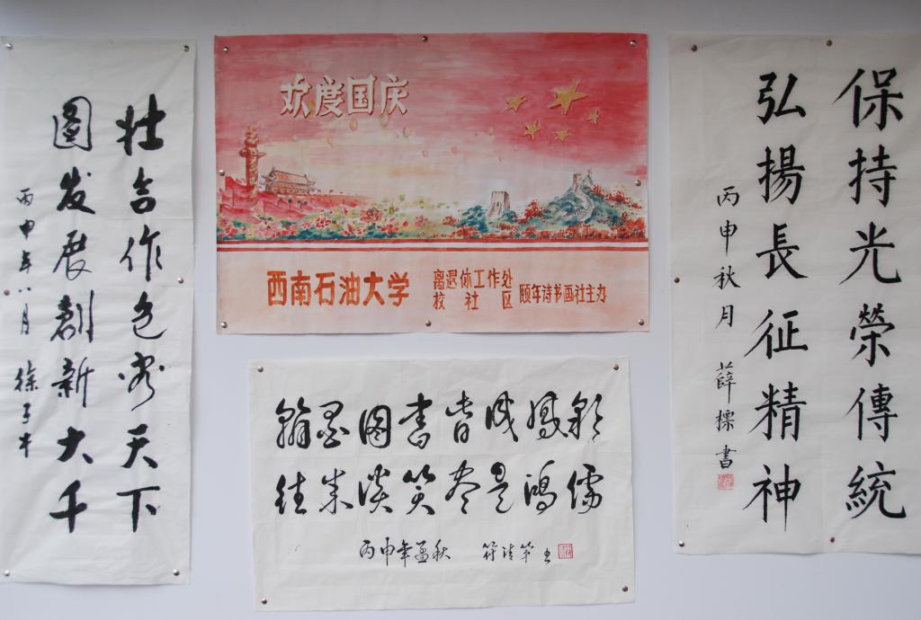 9月27日,由離退休工作處、新都街道西南石油大學社區和我校離退休頤年詩書畫社聯合舉辦的慶祝新中國成立67周年詩書畫專題櫥窗正式開展。本期櫥窗共計展出離退休詩書畫愛好者近期創作的詩詞、書法、繪畫、攝影作品37幅。