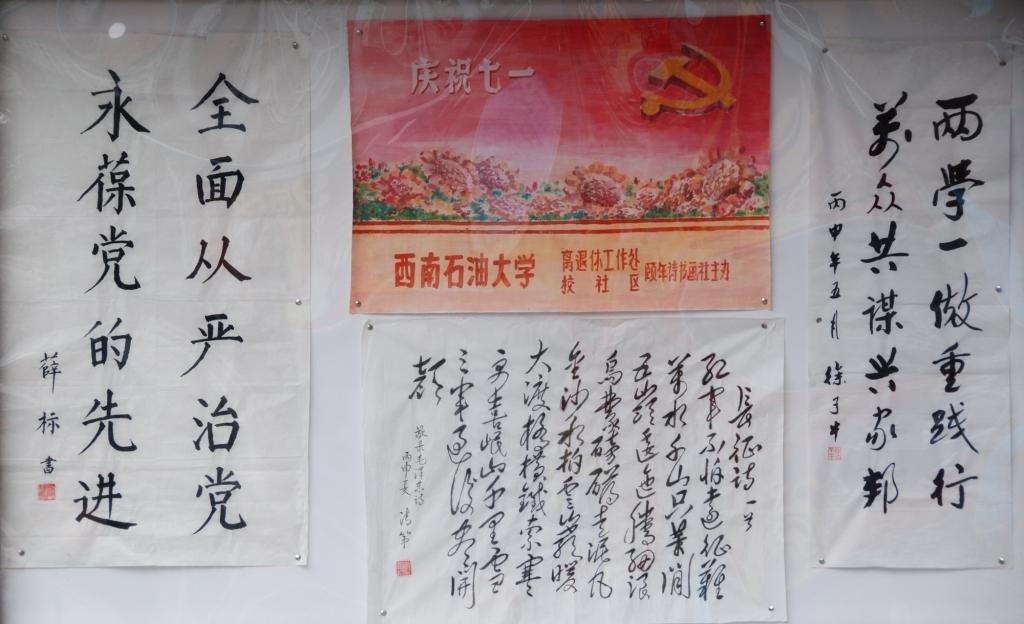 我校離退休人員慶祝建黨95周年詩書畫專題櫥窗于6月29日展出。本期櫥窗以慶祝建黨95周年和“兩學(xué)一做”為主題,共計展出老同志近期創(chuàng)作的詩詞、書法、繪畫、攝影作品45幅。