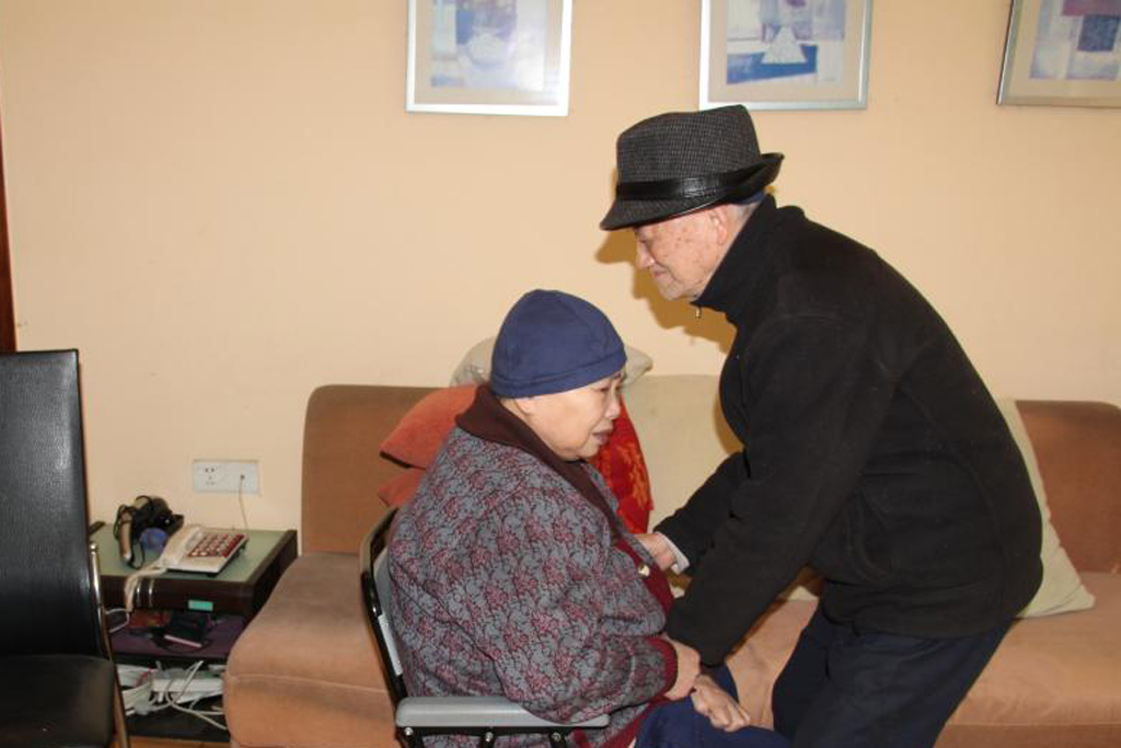 宋昭池老人和妻子何平德結婚已經49年。對于妻子的患病,他沒有選擇逃避,妻子每日的生活起居都由他親子照料,試想一下,一個已經70多歲的老人,靠著自己瘦弱的身軀支撐著整個家。妻子因為神經分裂,分不清人和事,最起碼的大小便都需要他抱上抱下,從2012年堅持到現在。最近一次,石油大學社區書記去看老人時,老人剛把妻子抱上大小便器,在與老人的交談過程中,老人的妻子因為神志不清時常哭泣。整個交談過程中,老人的左手一直握著妻子的右手,當妻子哭泣時,老人便和妻子說話,老人不知道妻子認不認識他,他只想做好一個丈夫的責任,給妻子以最真切,最簡單精神上的安慰。