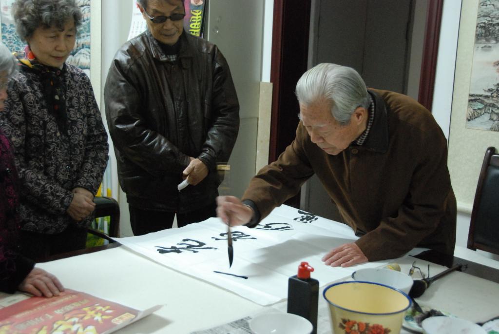 在交流活動中,離退休詩書畫愛好者揮毫潑墨,現場進行書畫創作,開展詩詞格律及創作講座。