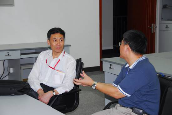 2008年9月,教育部本科教學(xué)評估專家屈展(左)在我校考察