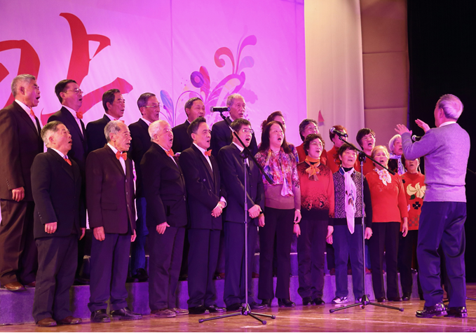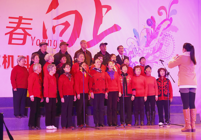 歡歌笑語辭舊歲,喜慶祥和迎新年。2014年12月26日下午,我校成都校區(qū)離退休人員2014年迎春文藝聯(lián)歡會在藝術(shù)學(xué)院演播大廳隆重舉行。校黨委書記孫一平、兩辦主任張昌元、人事處處長邱子輝出席了聯(lián)歡會。 離退休黨委書記劉紹新、處長曹靜陪同孫一平、張昌元、邱子輝觀看演出 合唱團(tuán)大合唱:《合唱祖國》、《中國中國鮮紅的太陽永不落》 舞蹈:《人人好心情》 薛標(biāo)京劇清唱:《三娘教子》 蔣南誠京劇清唱:《西施》 舞蹈:《春風(fēng)里陽光下》 合唱:《團(tuán)結(jié)就是力量》、《三八作風(fēng)歌》 合唱:《中國夢》、《草原上升起不落的太陽》 拳扇組合表演:《祝福祖國》 小合唱:《平安夜》、《山丹丹開花紅艷艷》 合唱:《保衛(wèi)黃河》、《我為祖國獻(xiàn)石油》 舞蹈:《冰雪天堂》 張宗全獨(dú)唱:《最美的歌兒唱給媽媽》 舞蹈:《藍(lán)色的蒙古高原》 合唱:《革命人永遠(yuǎn)是年輕》、《大中國》 | ? |
