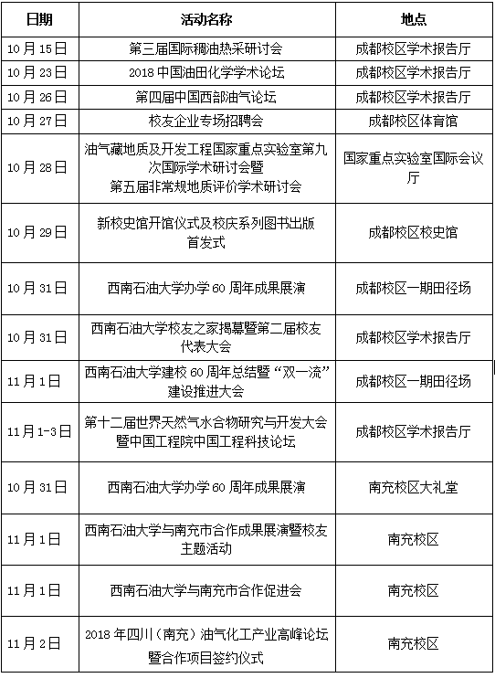 甲子榮光成興油夢,百年宏愿鑄雙一流。學(xué)校將于11月1日校慶日舉行西南石油大學(xué)建校60周年總結(jié)暨“雙一流”建設(shè)推進(jìn)大會等系列主題活動。