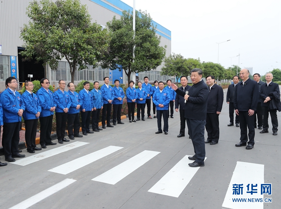 4月20日至23日,中共中央總書記、國家主席、中央軍委主席習近平在陜西考察。這是4月22日,習近平在陜西汽車控股集團有限公司總裝車間察看生產線,了解產品研發、生產、銷售和復工復產情況。 新華社記者 謝環馳 攝