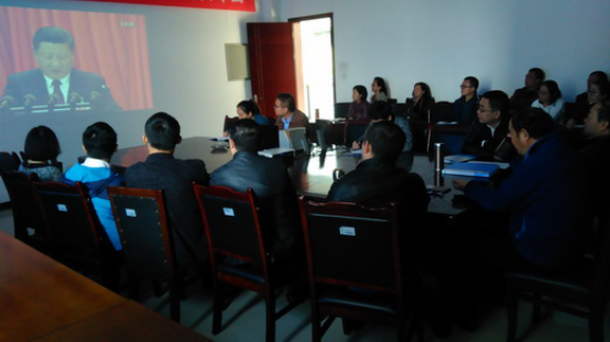 10月18日上午9:00,理學院黨委組織學院無課的老師、學生在明理樓A514會議室集中觀看中國共產黨第十九次全國代表大會開幕式,聆聽習近平總書記代表十八屆中央委員會向大會作的報告。