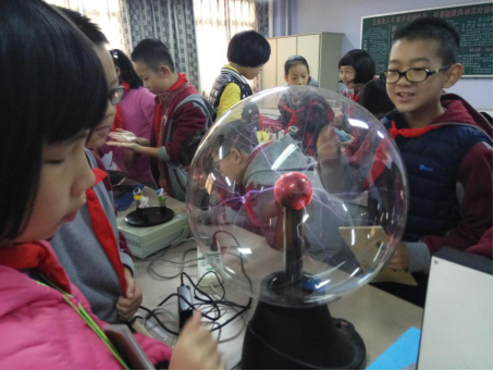 通過共振現(xiàn)象的演示與講解,讓小朋友知道當步伐振動頻率跟樓梯振動頻率越接近,樓梯越危險。通過人體導電測試儀器和閃電球的演示與體驗說明人體本來就是導體,當人體接觸帶電體或者接觸電源而形成回路就回導電。角動量守恒小實驗的演示,給同學們展示了滑冰運動員、跳水運動員可以通過手臂的位置來控制轉動(翻轉)的速度等有趣的物理小知識。