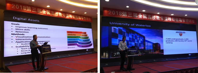 會議圍繞“互聯網+”時代高校數學課程教學改革創新、MOOC課程建設與混合式教學改革、新形態交互式教材開發、大學數學競賽與人才培養質量、教育信息化2.0背景下的數學課程交互式資源建設、STEM課程在線教育、考試方法的改革與Maple T.A/Mobius在線考試平臺的應用等內容展開,旨在分享國內外先進的大學數學教育教學理念和教學方法,加強高校之間的學習交流,促進教學改革,提高教學質量。