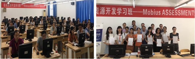 參會教師認真聆聽了報告并結合各自學校數學課程教學實際與其他參會代表進行了深入交流和探討。會議免費為參會教師提供了關于Mobius的在線資源開發學習,老師們親自上機實踐在線交互式課件和測試系統的開發和使用,對通過培訓的老師,會議頒發了合格證書。