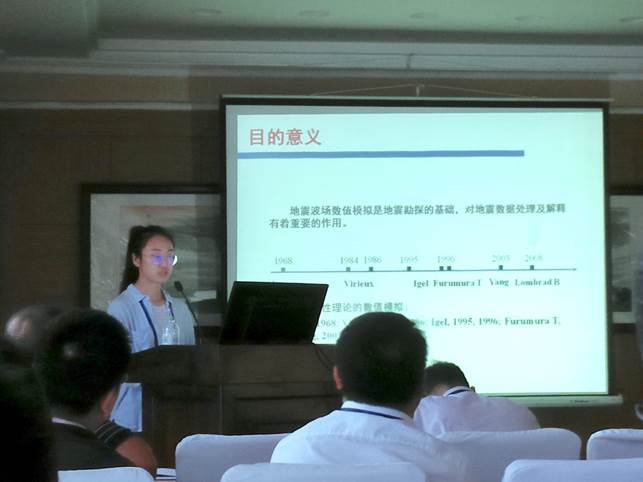 工業(yè)與應(yīng)用數(shù)學(xué)學(xué)會年會旨在交流工業(yè)與應(yīng)用數(shù)學(xué)各研究方向的最新學(xué)術(shù)進展及其在產(chǎn)業(yè)界的應(yīng)用成果,并結(jié)合工業(yè)中急需解決的關(guān)鍵問題和難點問題,展開廣泛的學(xué)術(shù)交流和討論。在本次會議中,我校研究生重點參與了以“計算地球物理學(xué)”為主題的第1專題的學(xué)術(shù)交流。張新敏、瞿丹分別作了題為“分數(shù)階地震波場的局部有限差分模擬方法”、“An Improved NSGA-II Algorithm For Multi-Objective Question”的報告。與會老師與同學(xué)針對她們的報告提問并給出了中肯的意見建議,兩位同學(xué)都認真作了回答并與大家進行了熱烈討論。