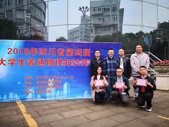四川省第四屆大學生普通物理知識競賽決賽于2018年10月27日在宜賓學院舉行。經過場外答辯賽及場內知識競賽兩個環節的激烈競爭,我校學生楊閩、王翰文、陳玲獲得一等獎,全省共6所學校獲此佳績,理學院唐斌、伍振海、張強三位老師獲優秀指導教師稱號。