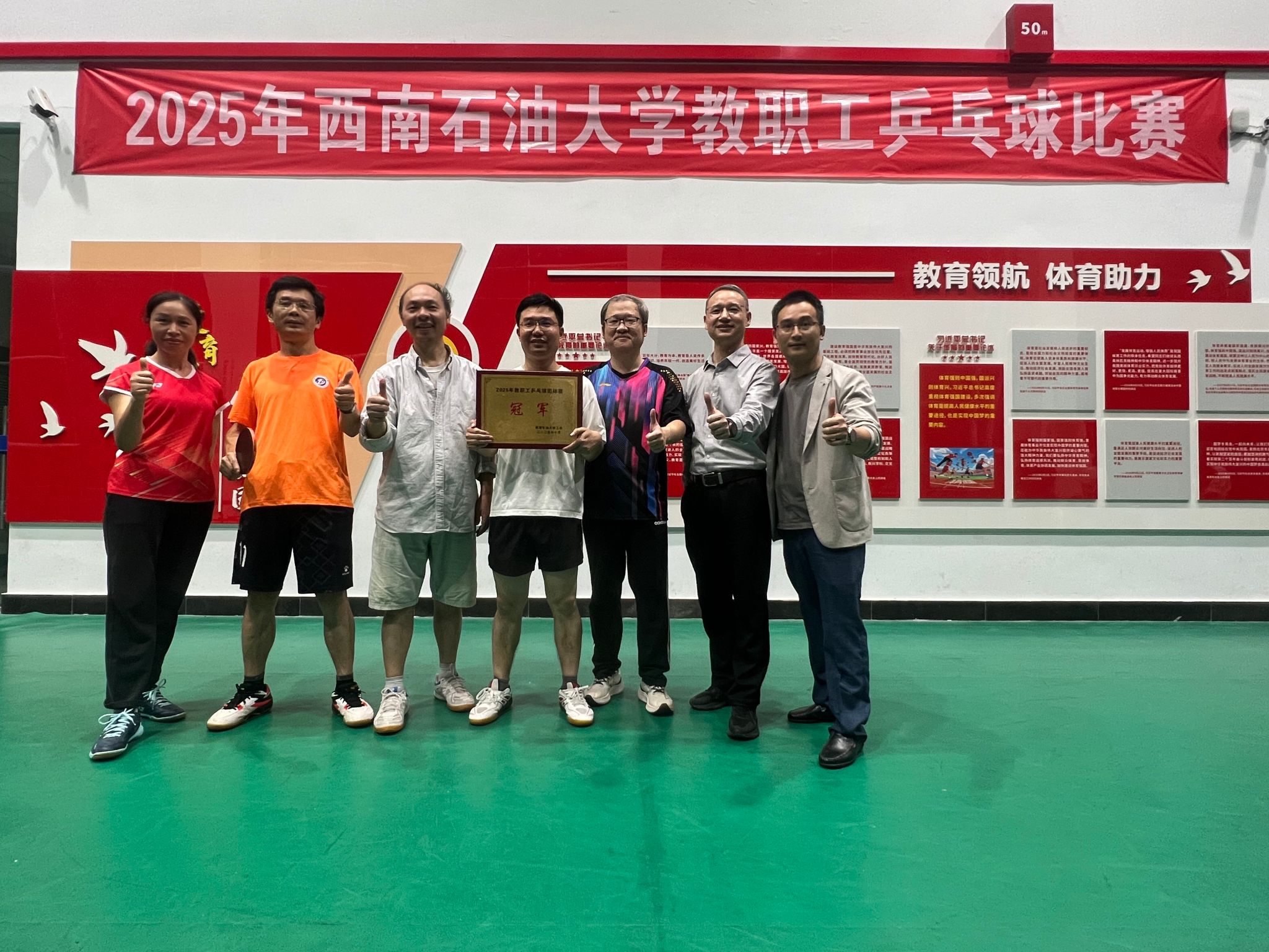 金秋十月,西南石油大學 2025 年教職工乒乓球賽于 10月13 日在體育館開賽。理學院選派陳亞麗、楊曉英、鄒其徽、李春泉四位教師,與地科院組成聯合隊參賽。