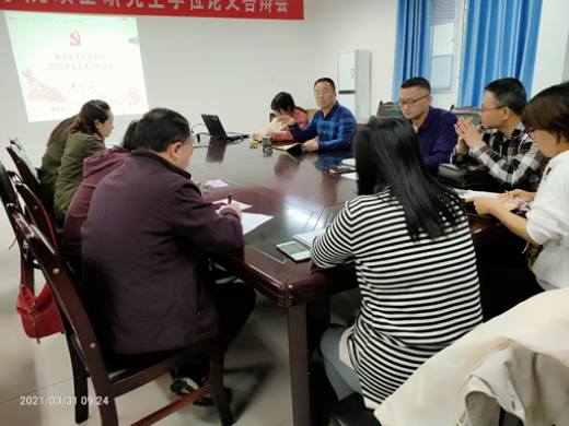 3月31日上午,理學院在明理樓C302B召開2020年度黨支部書記述職評議會暨黨史學習教育動員會。學院黨委委員、黨支部書記、副書記參加了會議。會議由黨委書記劉廷平主持。