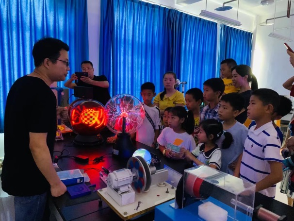 活動主要涉及到航模、力、熱、聲、光、電,包括共振、伯努利現象、角動量守恒、手動發電、輝光放電、溫柔電擊、視覺暫留等多項物理現象。其中輝光盤、尖端放電、電磁感應及渦電流、磁懸浮地球儀等一系列電磁演示實驗展現了電磁知識的奧秘,帶給了參觀人員視覺上的震撼,小朋友們無不感嘆物理的神奇。同時小朋友們對航空航天模型也表現出極大的熱情。