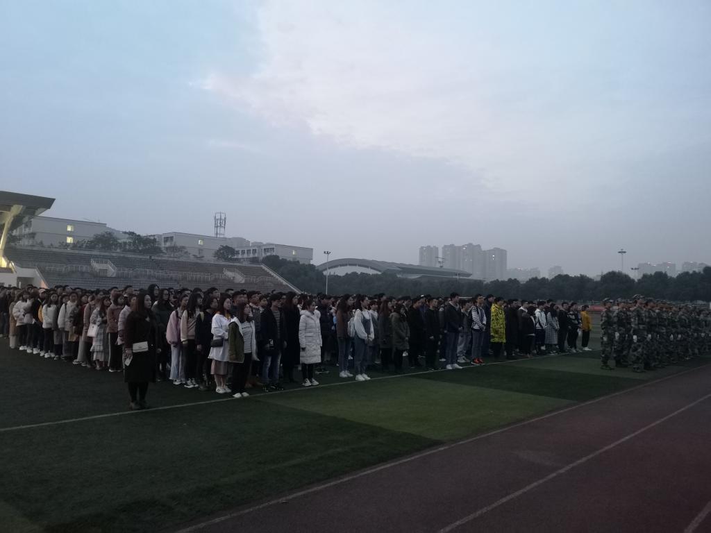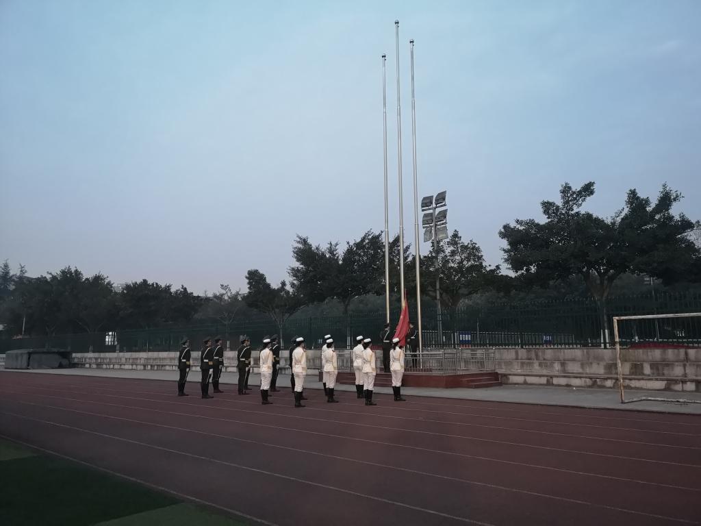 迎著晨曦中緩緩升起的朝陽,2019年3月11日,理學院新學期第一次升旗儀式在一期足球場順利舉行。學院黨委副書記王茂江老師,團委副書記伍悅老師,輔導員周緣老師出席了升旗儀式。