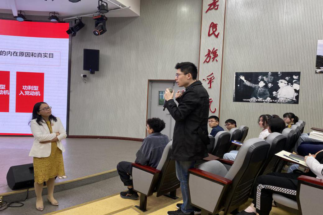 “你的入黨動機是什么?”講座一開始,張莉便向同學們拋出疑問,引發學員們的熱議。張莉從“什么是正確的入黨動機”、“為什么要端正入黨動機”、“如何在實踐中不斷端正入黨動機”等方面入手進行了講解,在談及自己的入黨動機時,張莉認為,首先要具備正確的、堅定的政治立場,并在政治思想、道德品行、執行紀律等方面保持先進,這是考察入黨積極分子是否符合黨員條件的一個重要尺度。