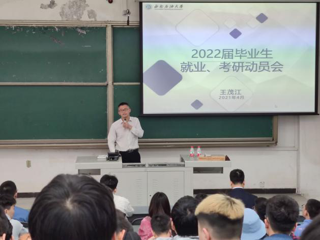 會上,王茂江結合社會現狀和學院近年來就業情況,為意向就業的同學們介紹了當前就業形勢,分析了就業困難的原因,指出了早做準備的具體方法;為選擇考研深造的同學們解讀了近年來的研招考試現狀,對比了本科生與研究生多項指標的差距,讓同學們充分認識到繼續讀研深造對于個人提升和就業選擇的重要影響;最后向同學們介紹了“學院助力”活動,理學院全體領導、教師將竭盡全力為同學們提供支持與服務。