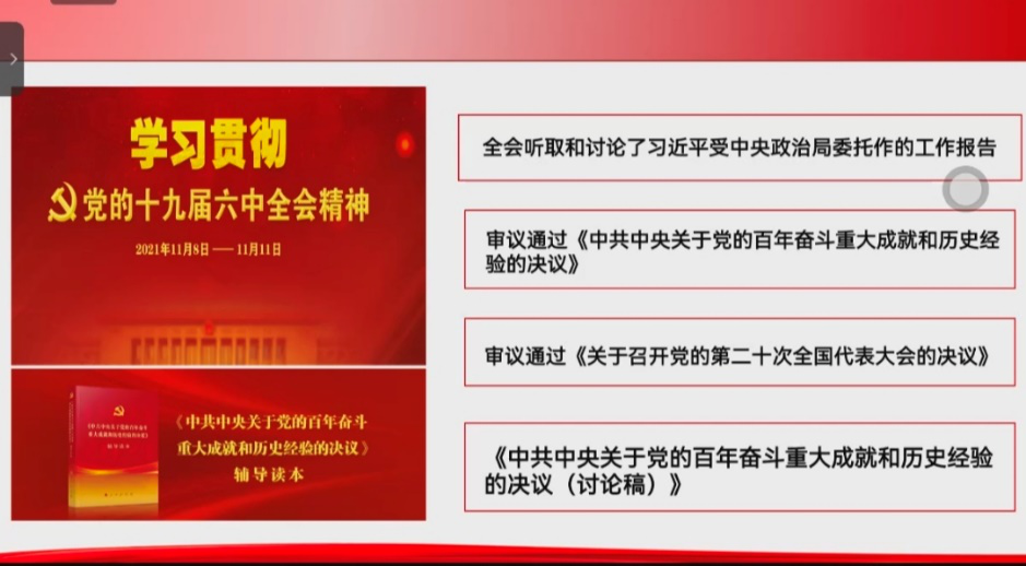 “中國共產(chǎn)黨成立一百周年的關(guān)鍵時(shí)刻,全社會(huì)共同學(xué)習(xí)黨的十九屆六中全會(huì)精神給我們回望歷史提供了重要素材。”張莉老師結(jié)合自身思考,分別從“為什么學(xué)、學(xué)什么、怎么學(xué)以及如何實(shí)踐”四個(gè)方面為全體學(xué)員進(jìn)一步講解了黨史學(xué)習(xí)的內(nèi)涵、重要意義及做法。同時(shí)她指出,我們每一位同學(xué)都應(yīng)該主動(dòng)學(xué)習(xí)黨史,發(fā)揚(yáng)紅色傳統(tǒng),為建設(shè)社會(huì)主義現(xiàn)代化強(qiáng)國貢獻(xiàn)我們自己的青春力量。
