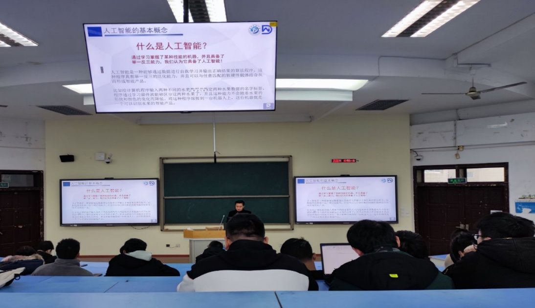 成江從人工智能的概念、知識架構、發展歷程、應用分類、行業現狀以及人工智能對各專業的影響給同學們做了詳細說明。講座中,成老師和學生熱切互動,針對“該如何考取人工智能相關證書?學習該專業有什么意義?”等一系列問題給出了詳細解答。講座中成江還給同學們展示了公司目前的一些項目案例的效果,同學們在實例的演示中感受到了人工智能專業的魅力所在。