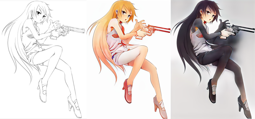 圖2 同學們使用AI對線稿圖上色后的效果對比演示