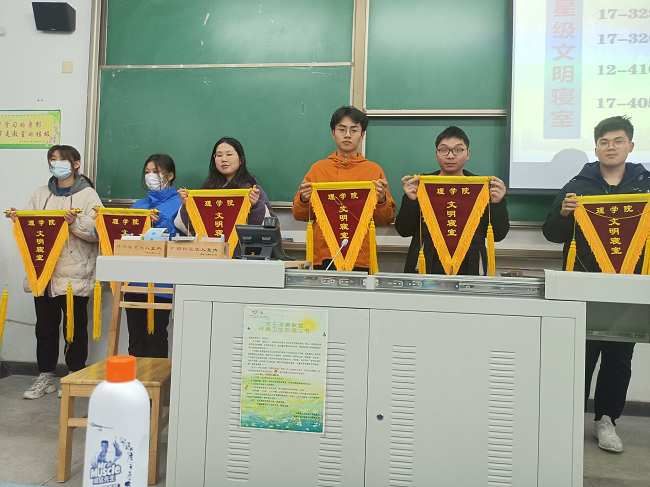 本次活動由理學院權益維護部周杰同學主持,他提到在幫扶的過程中,通過溝通交流與實踐,同學們從生活、學習、思想等各個方面都有提高,增強了室友間的凝聚力,提升了同學們的合作精神。參加活動的寢室成員積極性較高,同學們都積極行動參與到本次室風建設活動中,希望在接下來的學年里,同學們可以再接再厲,打造學風室風雙優寢室。最后,理學院權益維護部給第三期獲獎寢室頒發了獎品和流動紅旗。被幫扶寢室表示,雖然活動結束了,但是寢室環境的維護并沒有結束。我們會繼續創造和保持一個干凈、舒適、整潔、衛生、文明的住宿環境。
