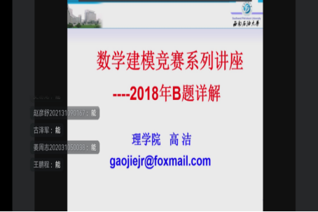 講座過程中高潔老師以2018年高教社杯全國大學(xué)生數(shù)學(xué)建模競賽題目為例,為同學(xué)們展示了解題的過程、步驟和思路等,強調(diào)了解題過程的四個步驟:問題背景與問題的提出、問題分析與模型的假設(shè)、模型建立與求解的算法和結(jié)果分析與模型的評價。
