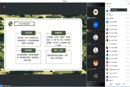 為進一步做好大學生征兵工作,推進國防教育普及深入,激勵優秀大學生應征入伍,5月12日14時30分,理學院于騰訊會議線上平臺開展了征兵主題事跡宣講活動。本次活動邀請到了學校征兵工作站志愿者、退役士兵屈磊同學進行主題事跡分享,理學院2020級輔導員李夢、300余名同學參加。