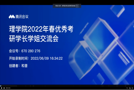 6月8日晚19時30分,學院通過線上騰訊會議開展了保研經驗交流會,2018級學生段茂騰、劉賽雅分別為同學們講述了各自的“保研之路”,30余名有意保研的同學參加會議。