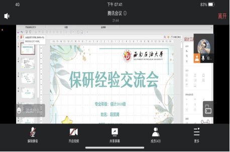 6月9日下午16時30分,學院通過線上騰訊會議開展了考研經驗交流會,分別邀請到了考研上岸西南石油大學的董紹宇、張敏,上岸四川大學的李華猛,上岸電子科技大學的吳昌俊、謝云博等5位2022屆優秀的畢業生學長學姐做專題交流分享。