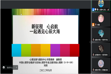 9月22日下午,學(xué)校心理發(fā)展與服務(wù)中心劉莉老師作了主題為《新啟航 心階段 一起遇見心辰大海》的專題講座,劉莉圍繞“新、心、海”三個關(guān)鍵詞展開,針對同學(xué)們面臨的兩種“mang”然,分析了兩個心位,最后提出了積極正確的兩套方法。