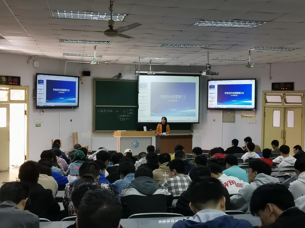 活動(dòng)過程中,輔導(dǎo)員帶領(lǐng)同學(xué)們共同學(xué)習(xí)了《西南石油大學(xué)學(xué)生校外住宿管理辦法》,為同學(xué)們進(jìn)一步講明了學(xué)生申請(qǐng)校外住宿的條件和程序,并結(jié)合《西南石油大學(xué)學(xué)生違紀(jì)處分辦法》中的相關(guān)條款,為同學(xué)們講解了違反學(xué)校校外住宿相關(guān)規(guī)定的后果。輔導(dǎo)員提醒同學(xué)們,校外住宿首先要注意人身和財(cái)產(chǎn)安全,在租住場(chǎng)所注意防火、防電和防盜,定期檢查室內(nèi)水、電、氣等相關(guān)設(shè)施;第二要嚴(yán)于律己、規(guī)律作息,按時(shí)回到租住地,自覺完成學(xué)校規(guī)定的各項(xiàng)學(xué)習(xí)任務(wù),主動(dòng)參與學(xué)校組織的各項(xiàng)活動(dòng);第三要講究衛(wèi)生,預(yù)防疾病,定期對(duì)租住房屋進(jìn)行消殺,營(yíng)造一個(gè)干凈衛(wèi)生的居住環(huán)境。
