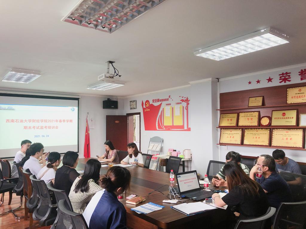 2021年6月24日,財經學院在完井樓401會議室召開2021年春季學期期末考試監考培訓會,各教研室負責人及期末考試監考人員參加了會議,會議由副院長李汶靜主持。