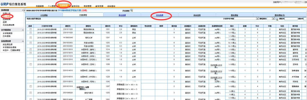 首先用VPN登錄校內網,輸入教務系統網址http://10.28.63.111:9001/(或http://10.28.63.111:9002)。依次點擊導航條中的【選課管理】→【網上選課】,選擇培養方案,然后點擊【校任選課】,進入文化素質課程選課頁面,選擇課程點擊確定即可。