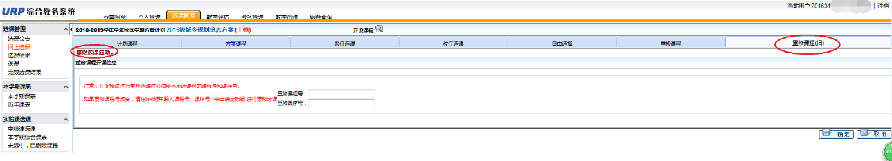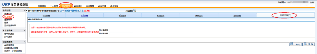 1、學生所選課程與本次組班課程的課程號相同,可以通過直接重修(補修)選課。