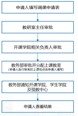 4、為簡(jiǎn)化調(diào)課手續(xù),提高工作效率,調(diào)課申請(qǐng)取消學(xué)生學(xué)院審批環(huán)節(jié)。