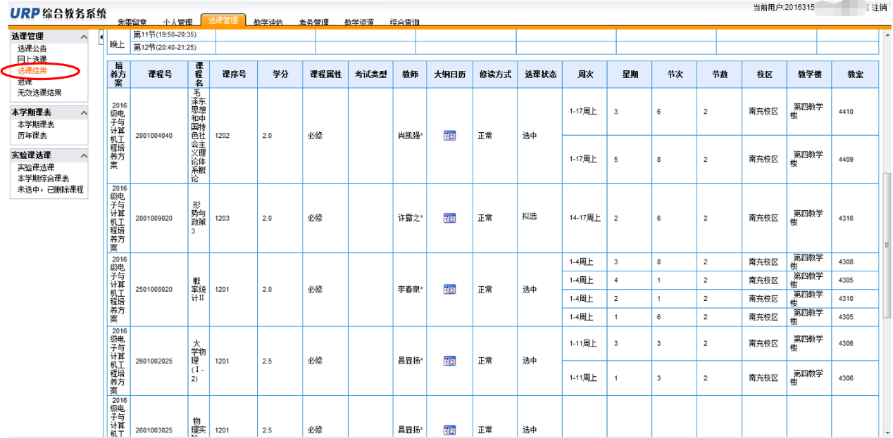 選課成功后可在【選課結(jié)果】中查詢已選課程。