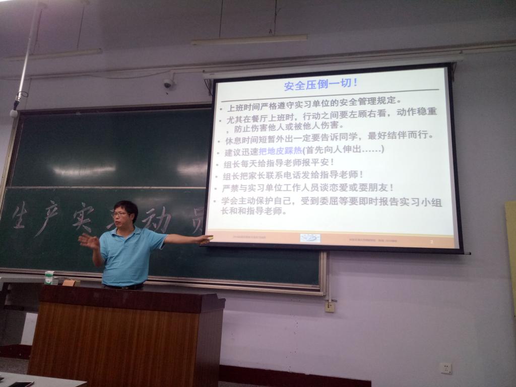 彭雙院長指出,專業生產實習是教學實踐環節重要的組成部分,同學們在思想上和行動上都要高度重視。他強調同學在實習中一定要樹立強烈的的安全防范意識,實習時一定要積極主動并注重自身和學校的形象。最后他要求同學們一定要把實習工作與畢業論文選題和寫作緊密聯系起來。
